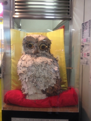 その後、宝くじ売り場にも大きなフクロウの置物が!!今日はフクロウに縁のある日だっと思わずパチリ。お上りさんになってました。