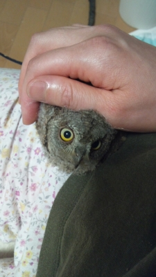 ふくろうって羽の油がが少ないから水を吸って重くなるって、ドライヤーしてあげなきゃねー