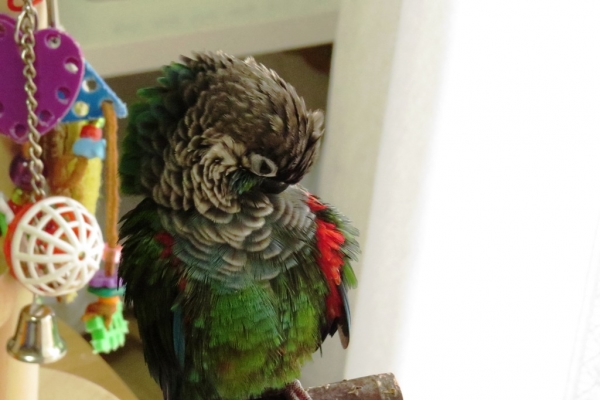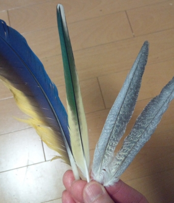 てんちゃんですが、四月に三回どっと羽根が抜けて、もう換羽終わりだと思っていたら、先週また抜けだしたんです。