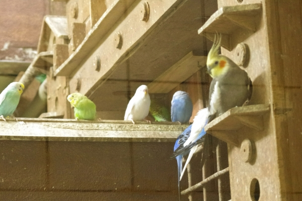 コザクラ、オカメ、ジュウシマツなどが自由に飛んでいます。