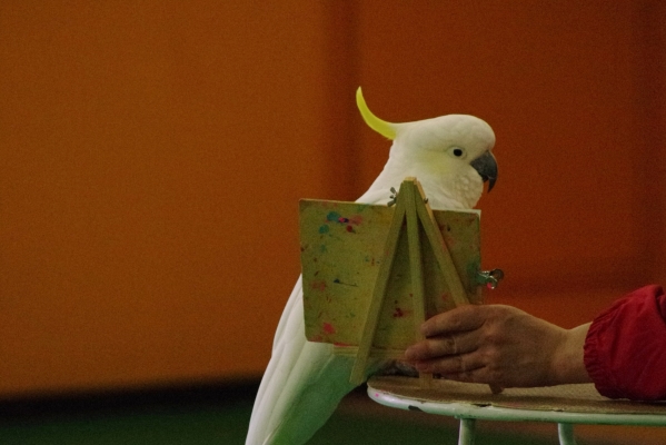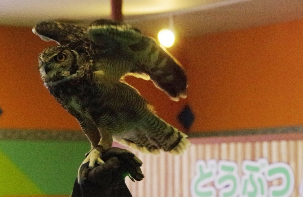 フクロウのフリーフライトや絵描きキバタンのおしゃべりに童心に戻り