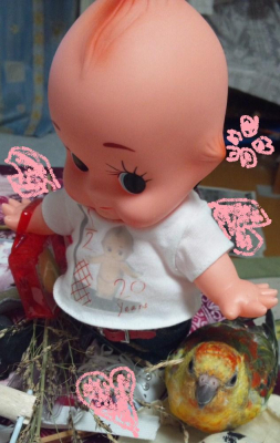 言われてみれば、キューピーさんなでてる様に見えますね(笑)