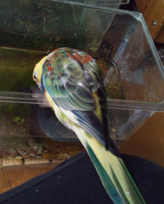 新しい羽根は、色素が濃いです。黄色が特に綺麗です。赤も鮮やかになり