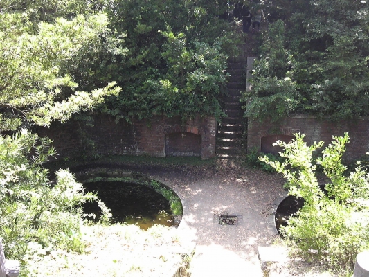 昼間でも懐中電灯が無いと見れない施設跡もあります。