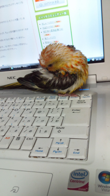 その後温かいと分かってるパソコンの上に移動、やれやれ。