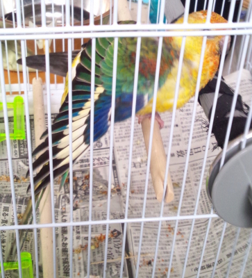 色物(インコ)はメスが抱卵でオスが餌運びですので