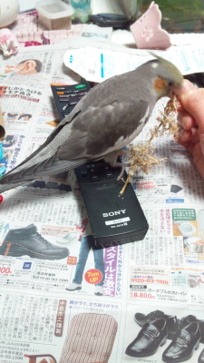 オカメインコも賢いですね、よく教育が行きとどいて(笑)