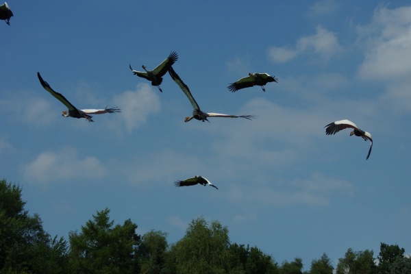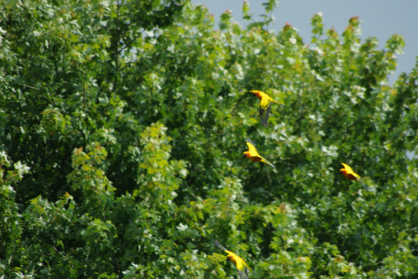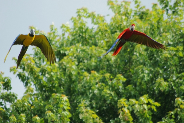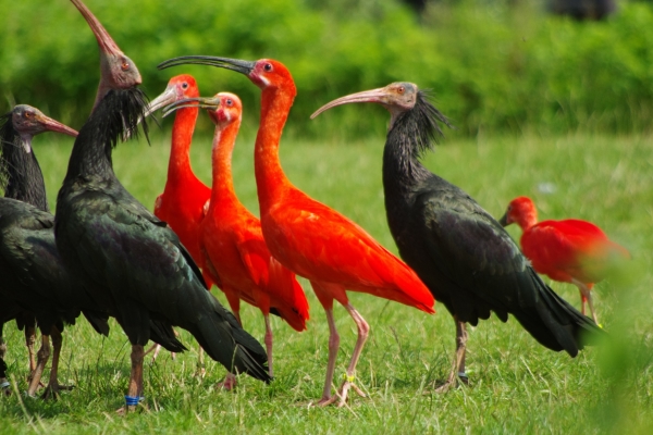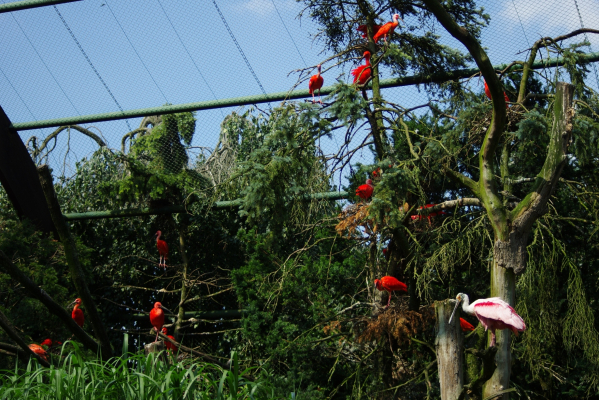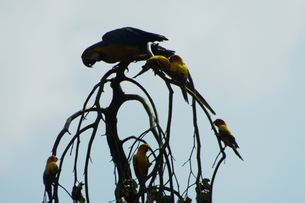 カンムリヅル7羽以上、コンゴウ4羽、ルリコン2羽、真っ赤なショウジョウトキと