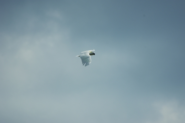 わー初めて見ました、キバタンすごく高く飛ぶんですねー