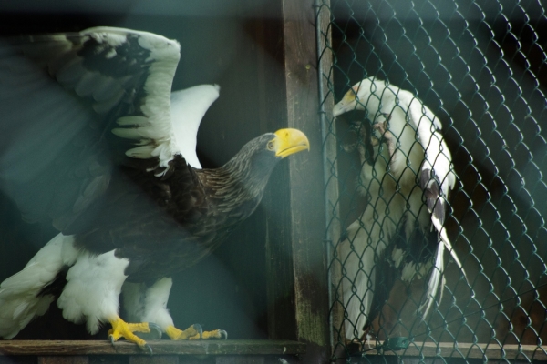 オオワシのケージは金網の目が小さかったので、ちゃんと個体ごとに