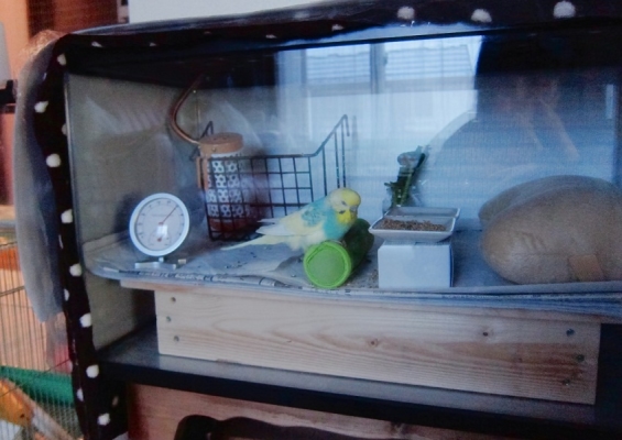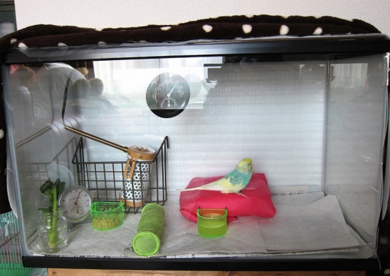 看護にはプラケースのほうがよいとはわかっていたのですが、近所の店には小さいのしかなく・・・ ケージで30度保温は大変でした・・・