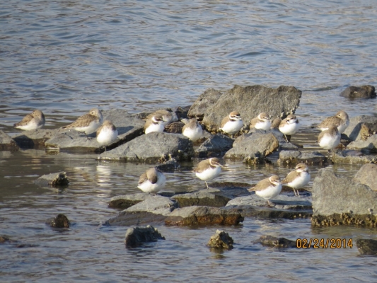 探鳥会の2日前に訪れた時はカモ類しかいなかったのに、当日はダイゼンや、ハマシギ、シロチドリを見る事が出来ました