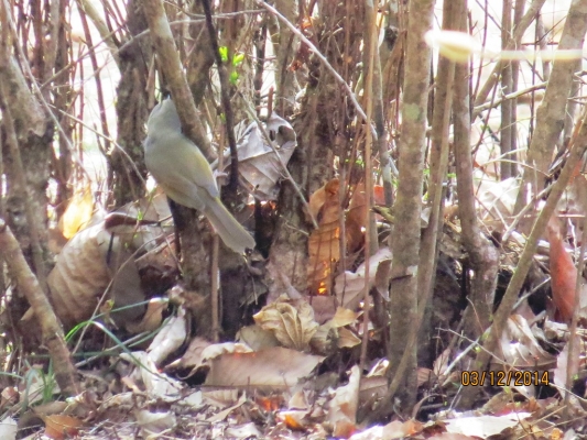 諦めきれずに木の下の方を覗くとカモらしい姿が・・