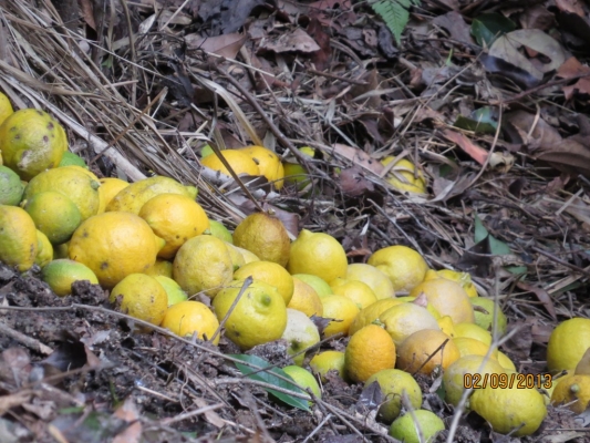落ちたまま放置されてるレモン畑が実家の周りにあります。