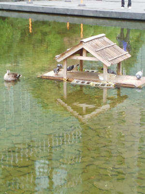 親カルガモさんは 物産側と皇居側を飛んで往復して