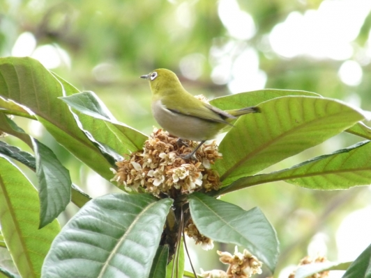 うちに来る目白のカップル(親子かも)は金木犀の中に隠れて