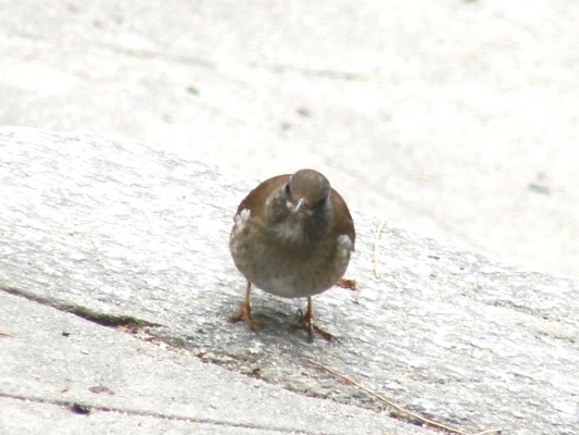 しげみからぴょこんと現れて、足元にいつまでもちょろちょろしてました。怪我でもしてて飛べないのかと思ったくらいです。
