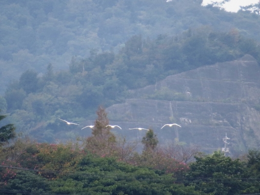 あれー?(´・_・`)後で見ても、首が長く鶴や白鳥のようなシルエット、ムクドリのような大きさという程度にしかわからないのが残念です
