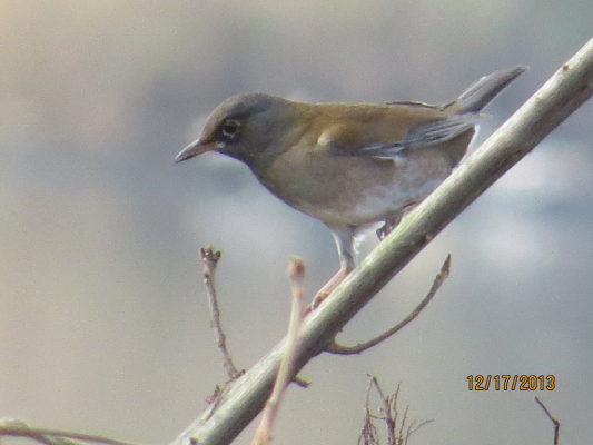 その後アカハラのようなとりが松の枯れ木のてっぺんにじっとしていたのに超、超悔しいー