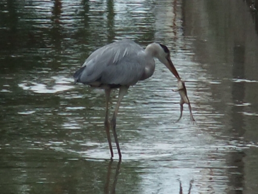 アオサギさん、カエルも食べるんですねー