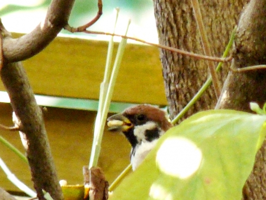 そうそう、庭の月桂樹の木のなかで、ガサガサ音がするので覗き込むと