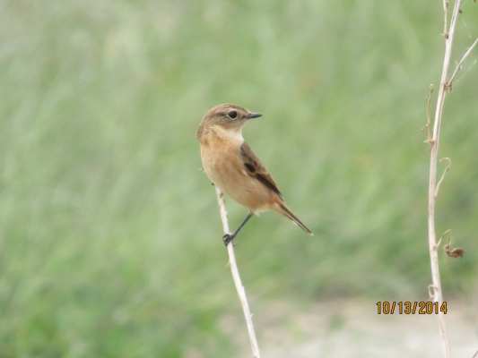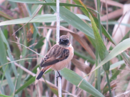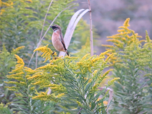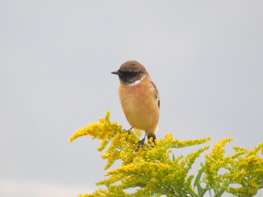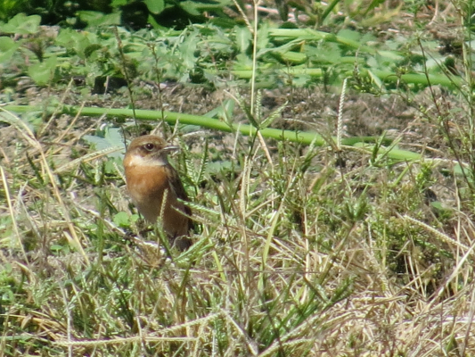 風に飛ばされそうなノビタキが必至で枯れ枝につかまっている姿がかわいらしかった