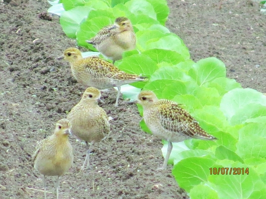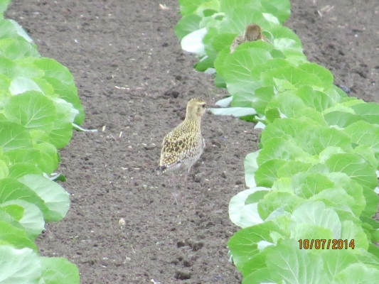 そして畑を一回りしていると、キャベツ畑の遠〜くにムナグロがいました、もっとたくさんいたそうですが、苗に被害が及ぶので、農家の方が追い払ったそうです
