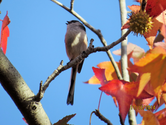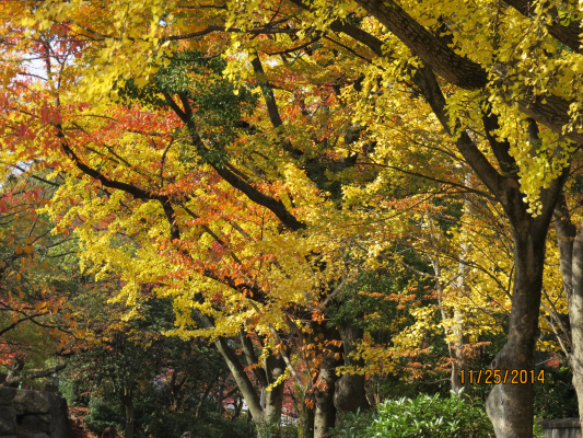 そろそろ紅葉がきれいですねえ。紅葉をバックにいい写真が撮れないかな、とがんばってみたけどいまいち。。