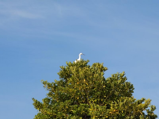 青い空、緑の木にコサギの白が目立ちますね