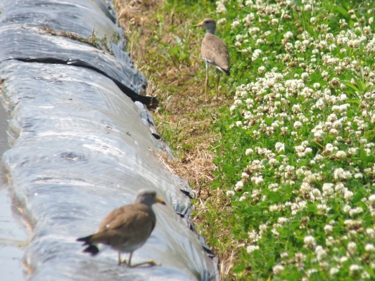 向かいにできたばかりの水田に、さっそく鳥たちが集まってきました。