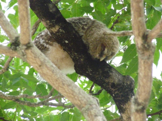 >えめさん、花鳥園のポポチャンも細くなる種類、アフリカオオコノハズクですね