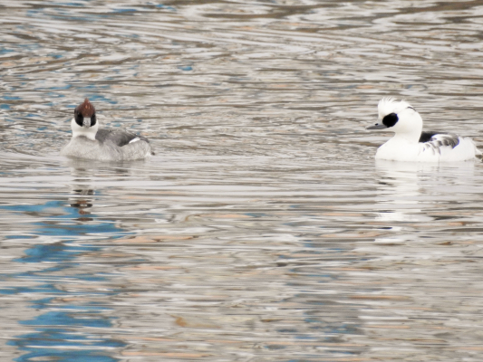 毎年ホオジロガモと、カワアイサが来ますが人間の姿を見ると見る見る遠ざかっていきます。