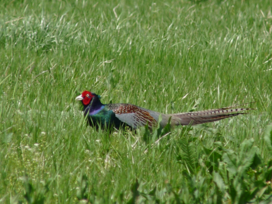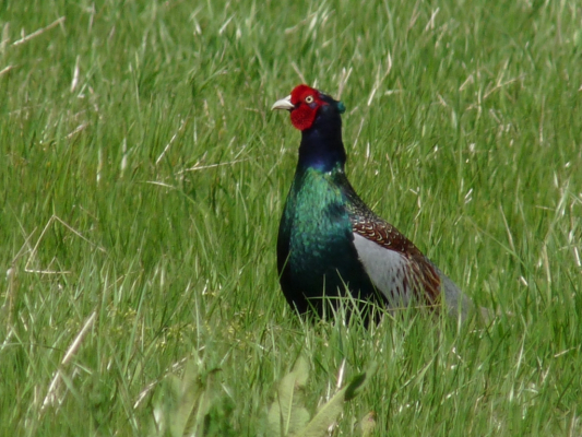 雉の雄、緑色のテカリ具合が最高です。北海道はどうも生息しているのが高麗雉のようですので、国鳥の雉と比べると、地味になってしまいます。