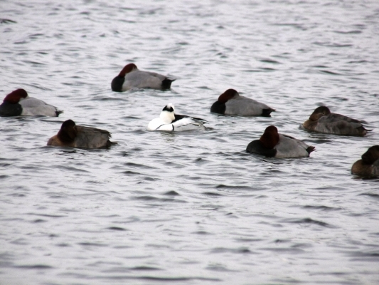 アヒルくんとアイガモくんが他のカモ軍団から離れて池でプカプカ。