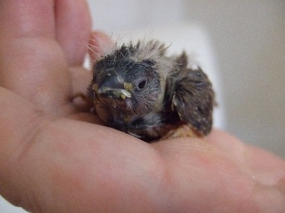 我が家で生まれて挿し餌中のペンギンキンカの雛っぴ