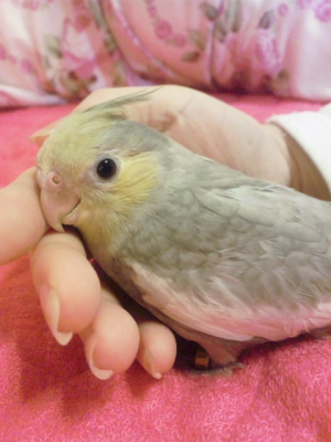 挿し餌も終わらぬ時期にお迎えしたので、割とベタ慣れです。