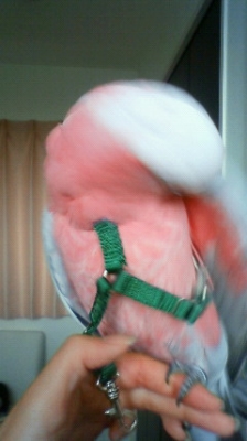 モモイロは比較的嫌がることなくハーネスをしたのですが、クルマサカオウムはハーネスに馴れてくれず、殆ど使うことなく、しまってあります。させてくれる子と、そうでない子とではっきり分かれるようです。