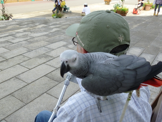 大型インコちゃん連れてのお散歩いいですね。