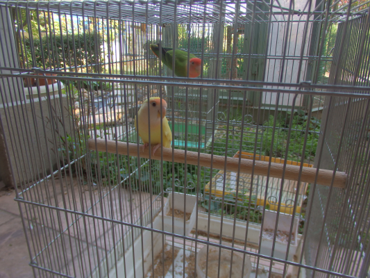 今回は、コザクラちゃんも数羽、庭に面したホールにいて、綺麗な羽根色を堪能させてもらいました。