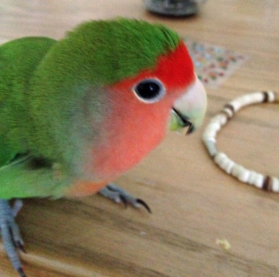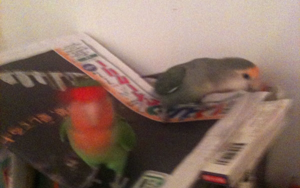 ピーちゃんはヒナから育てたので鳥同士のコミュニケーションがへたなのかなぁ。毛づくろいもぎこちないし(笑)