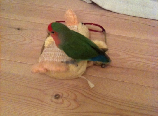 ルナにクーちゃんの尾羽をたすとほとんど同じ大きさです、体重も最近はルナを越えましたが以前はルナに負けてました