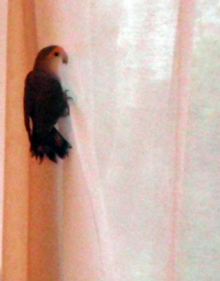 ルナの発情は相変わらずで、消防点検の為一時的にケージの底をつけたらまた、羽を広げてプププとやりだしたので、画像のようにスケスケルックです