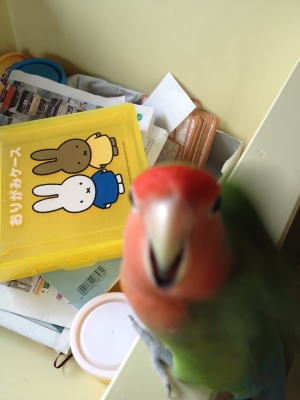 隊鳥、ピーちゃんの写真、おしりすりすりですな。(笑)