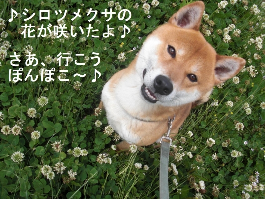赤柴 犬コ(仮名)さんinシロツメクサ畑 と