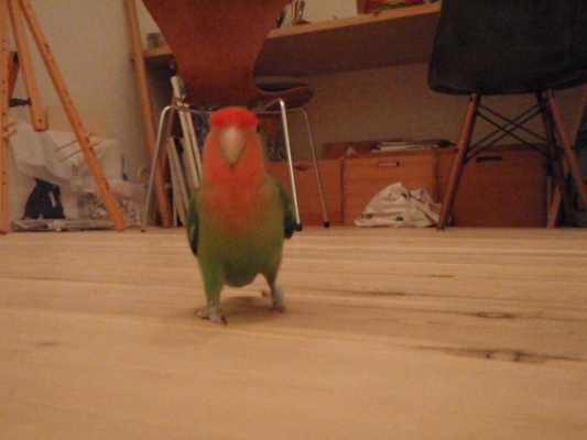 昔実家にいたセキセイ・ボーイは、意中のおんなのコの周りをやたらぐるぐる回ってたけど・・・