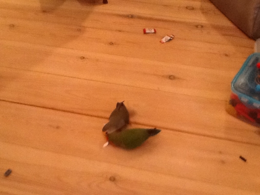 紙の短冊2羽で一緒にくわえてる写真があるけど、