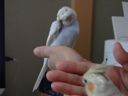 うちのピピは、お迎え当日にケージに入れ損ねて、追いかけてしまったので、始めは全然手に乗ってくれませんでした。