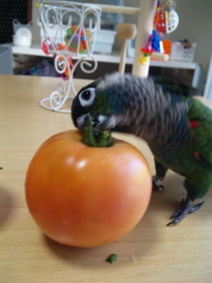 他の方のブログでセキセイとボタンにトマトをあげてるって読んだので、