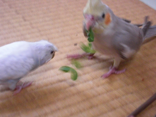きょんちゃんは、ほかのセキセイにはあまり反応しないんだ…。