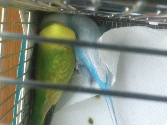 セキセイちゃん、ケージの底でも寝るんですね、以前飼ってたセキセイたちは天井の角に止まって寝ていました、寝方も色々ですねー